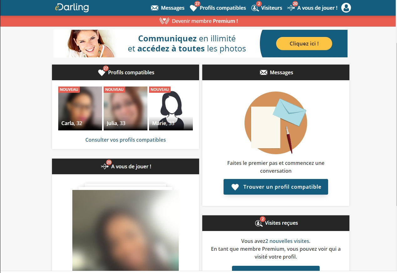 Lors de notre test d’edarling, on a pu constater que le site est très facile à prendre en main. La page d’accueil est très claire et on a une excellente visibilité des profils compatibles.