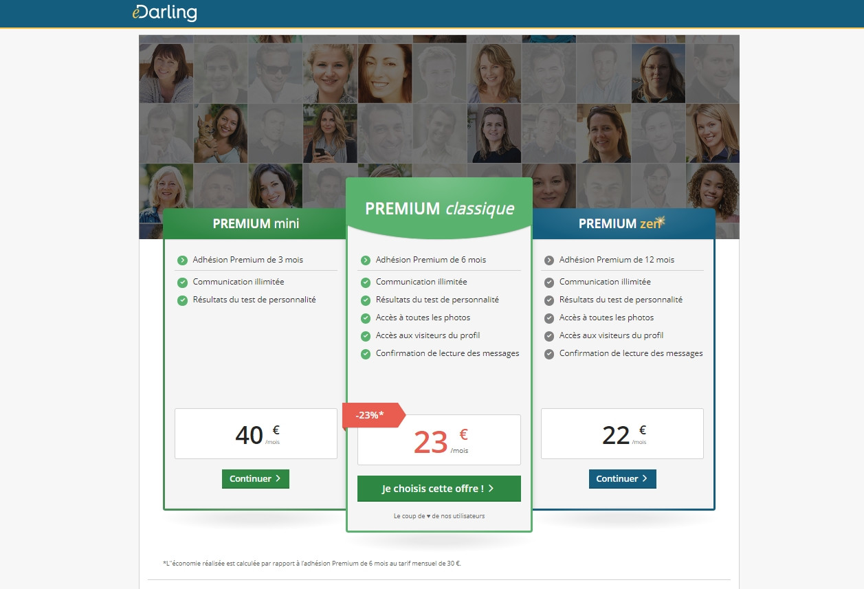 Pour profiter pleinement des possibilités du site edarling, il est possible de choisir entre 3 offres différentes. Ces abonnements donnent les mêmes possibilités, il n’y a que la durée d’engagement qui change. Pour s’inscrire sur eDarling, les tarifs sont les suivants :