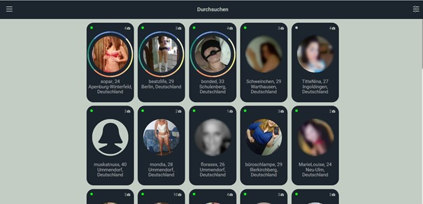 Die Benutzeroberfläche ist bezüglich Ihres Designs wirklich sehr, sehr minimalistisch. Und zwar so minimalistisch, dass es auf der Landing-Seite der Plattform abgesehen von den Profilen der Mädels, die uns entsprechen, nichts zu finden gibt. Sie sind auf dem Bildschirm nebeneinander aufgereiht. Angezeigt werden ihr Pseudo, ihr Alter sowie die Anzahl der Profilbilder. Anfangs erscheint dies ein wenig seltsam, da es doch sehr kahl ist im Vergleich zu dem, was wir gewohnt sind. Aber man gewöhnt sich relativ schnell daran und letztendlich ist es eigentlich recht angenehm, nicht immer mit Informationen überflutet zu werden. Insgesamt betrachtet haben wir das moderne, schnörkellose Design von Horny-hub eigentlich gemocht; auch wenn es nicht besonders freundlich ist.