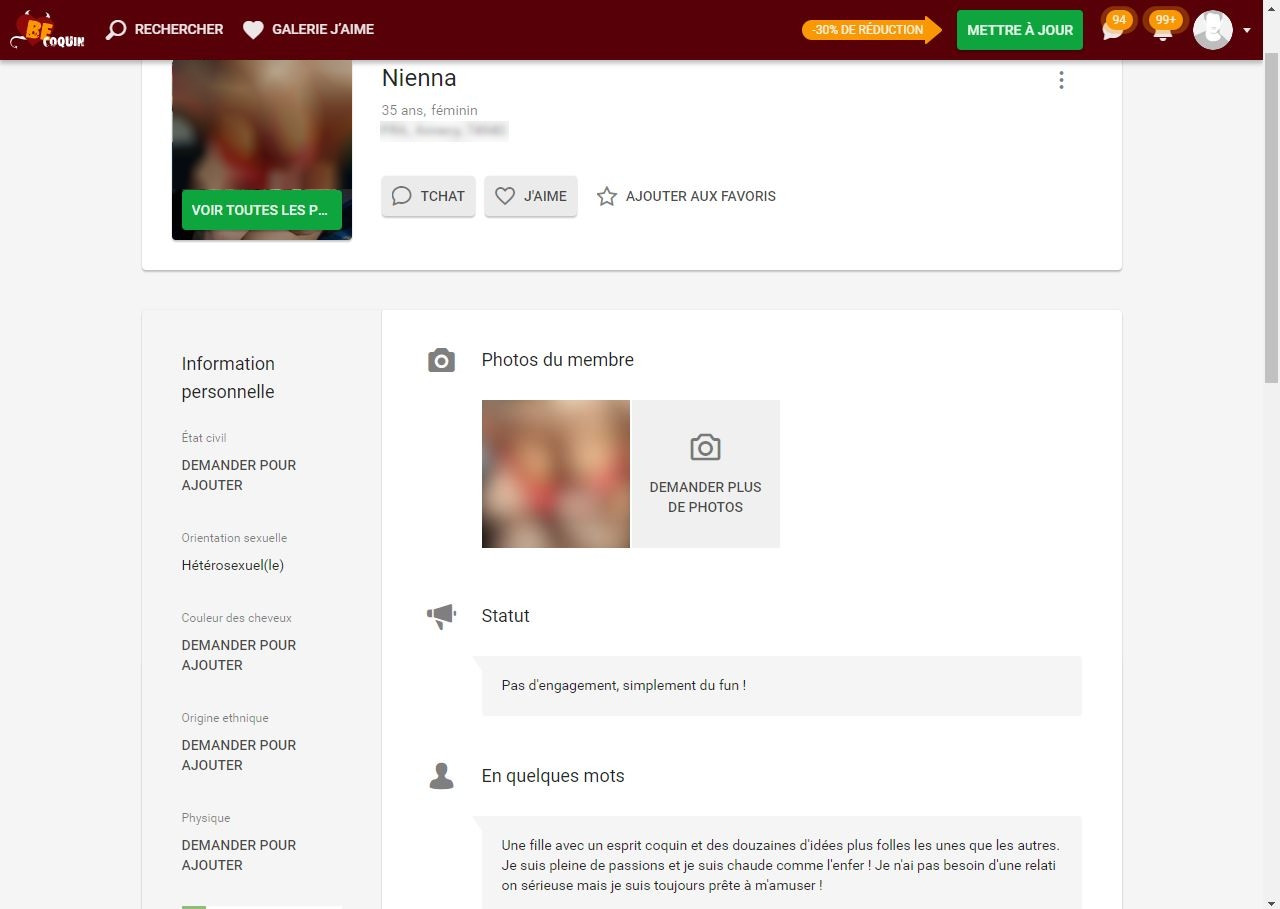 Je me suis inscrite sur BeCoquin il y a tout juste 1 mois. Je n'ai encore rencontré personne, mais j'y passe de très bons moments !